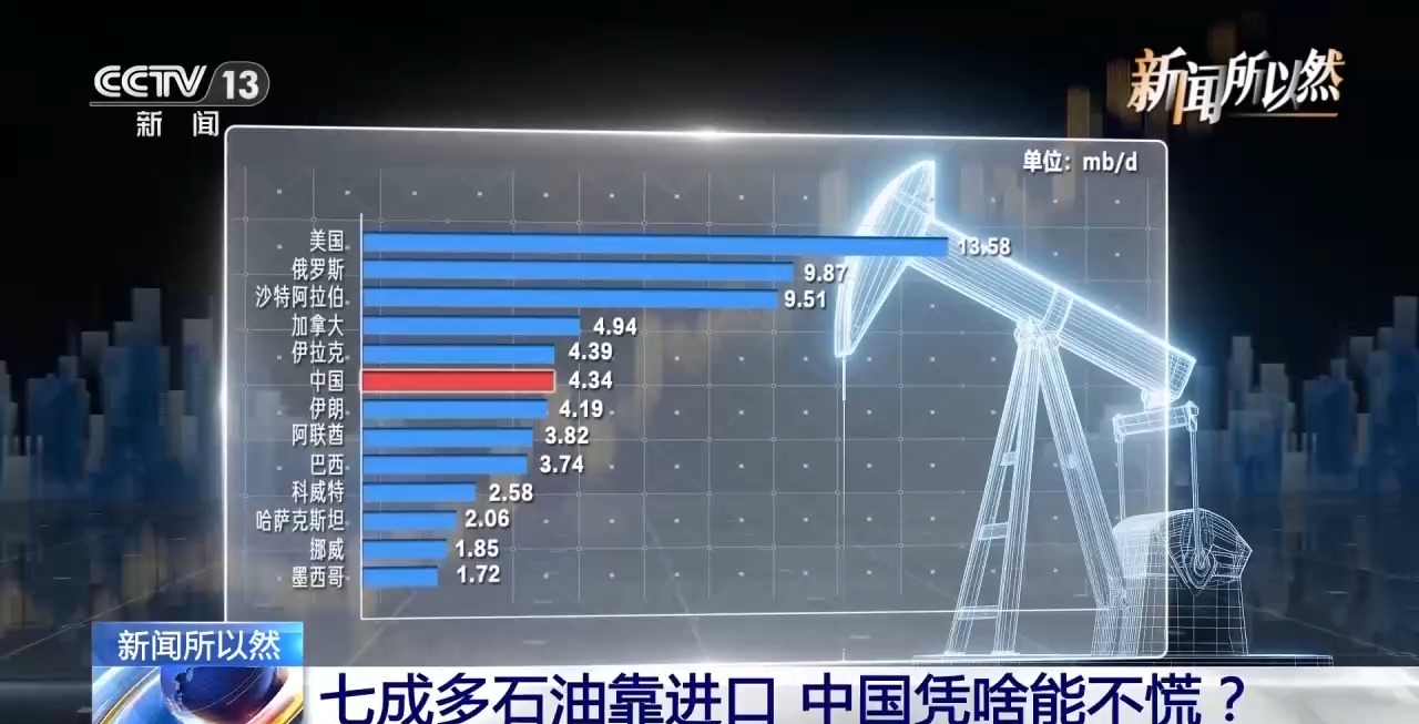总台记者梳理发现,十多年来尽管中国对能源需求持续上涨,但石油在能源结构中的占比始终稳定在18%左右,这18%里还有大约20%是我们自产。